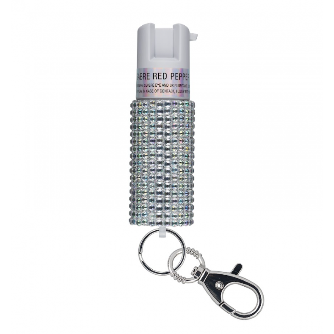 【BCS】SABRE KR-J-WH-02輕量鑰匙圈型-水鑽-未來白-美國SABRE沙豹防身噴劑
